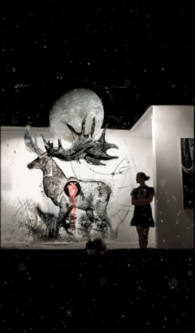 animals were drawn on transparent curtains and positioned in the mist. I drew a map